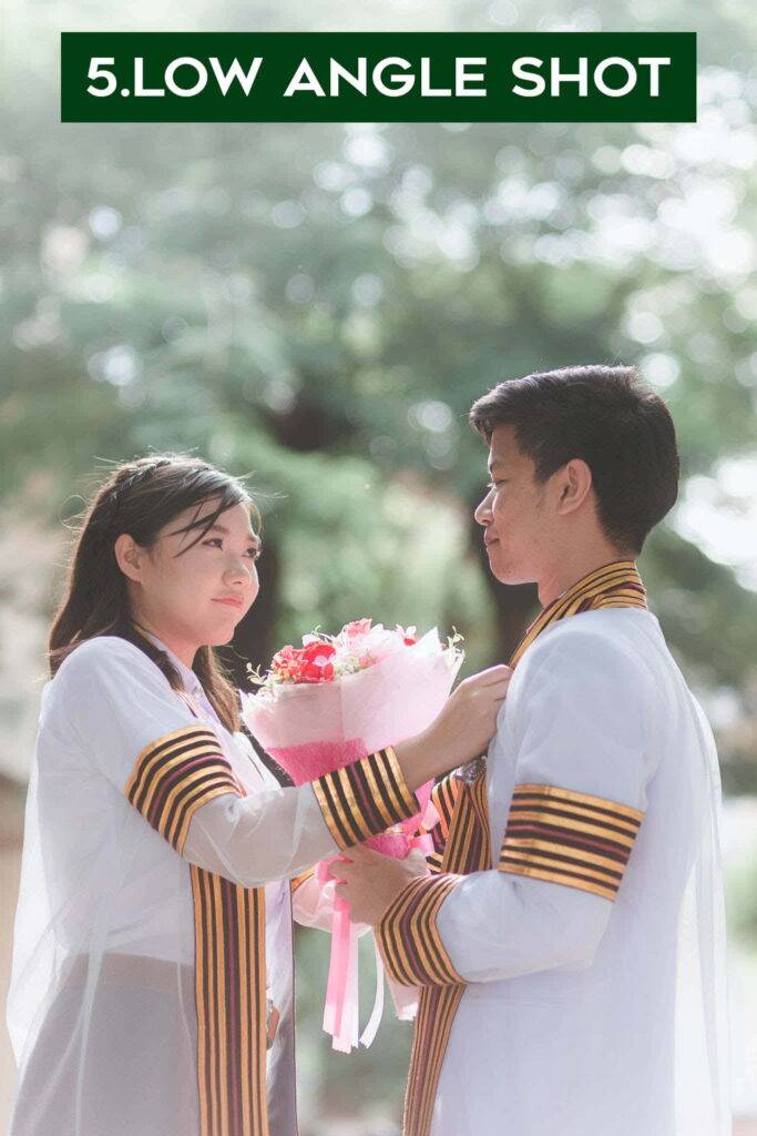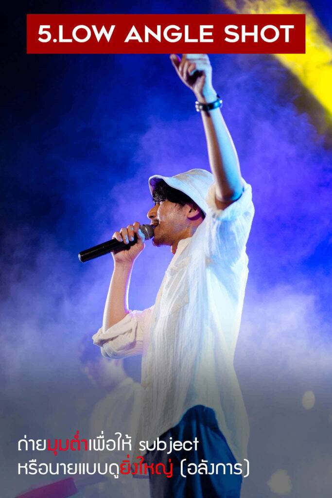 คือการเอากล้องไว้ต่ำกว่า subject และถ่ายเสยขึ้น เหมาะกับภาพที่ต้องการให้ดูยิ่งใหญ่ อลังการ