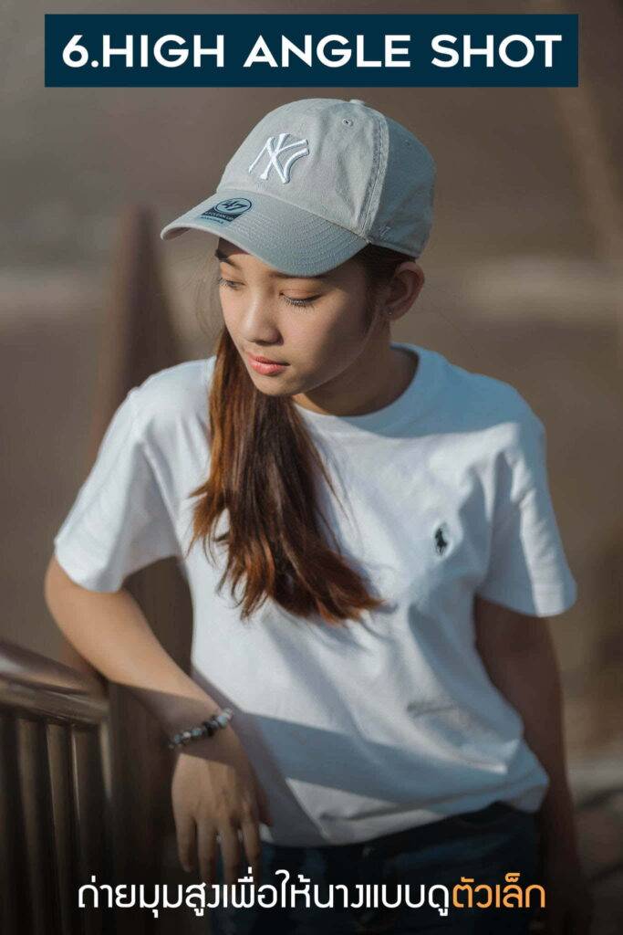 คือการถ่ายโดยกล้องอยู่สูงกว่าแบบ เหมาะกับภาพที่ต้องการให้นางแบบดูตัวเล็ก ดูผอม